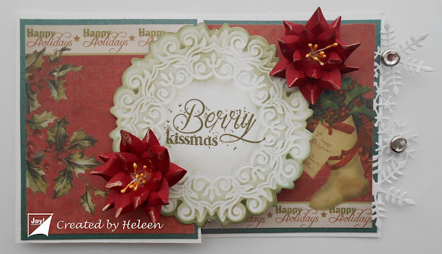Een prachtige kerstkaart en hier ook weer mooie mallen en papier,