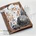 Teken een venster af op de rechter helft van het grootste cardstock. ( Ik heb de cirkel een stukje omgetrokken en onderaan een rechte lijn getrokken) Het venster moet ongeveer 2 cm vanaf de bovenkant van de kaart komen. Snij het venster eruit en inkt de randjes evt.Zie foto 1 en 2.